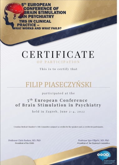 Jaki jest zakres porad oferowanych przez Filip Piaseczyński?Filip Piaseczyński to psychiatra. Na podstawie swojego doświadczenia i wykształcenia Filip Piaseczyński oferuje usługi takie jak: konsultacja psychiatryczna (pierwsza wizyta), konsultacja psychiatryczna (kolejna wizyta), konsultacja online, konsultacja psychiatryczna, Kwalifikacja do leczenia TMS.