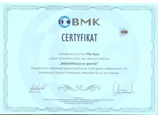 Swoje doświadczenie zdobyłem w wieloletniej pracy ze sportowcami. Współpracuje z klubem siatkarskim Gwardia Wrocław. Nadal doskonale swoje umiejętności na wielu nowoczesnych szkoleniach z fizjoterapii.