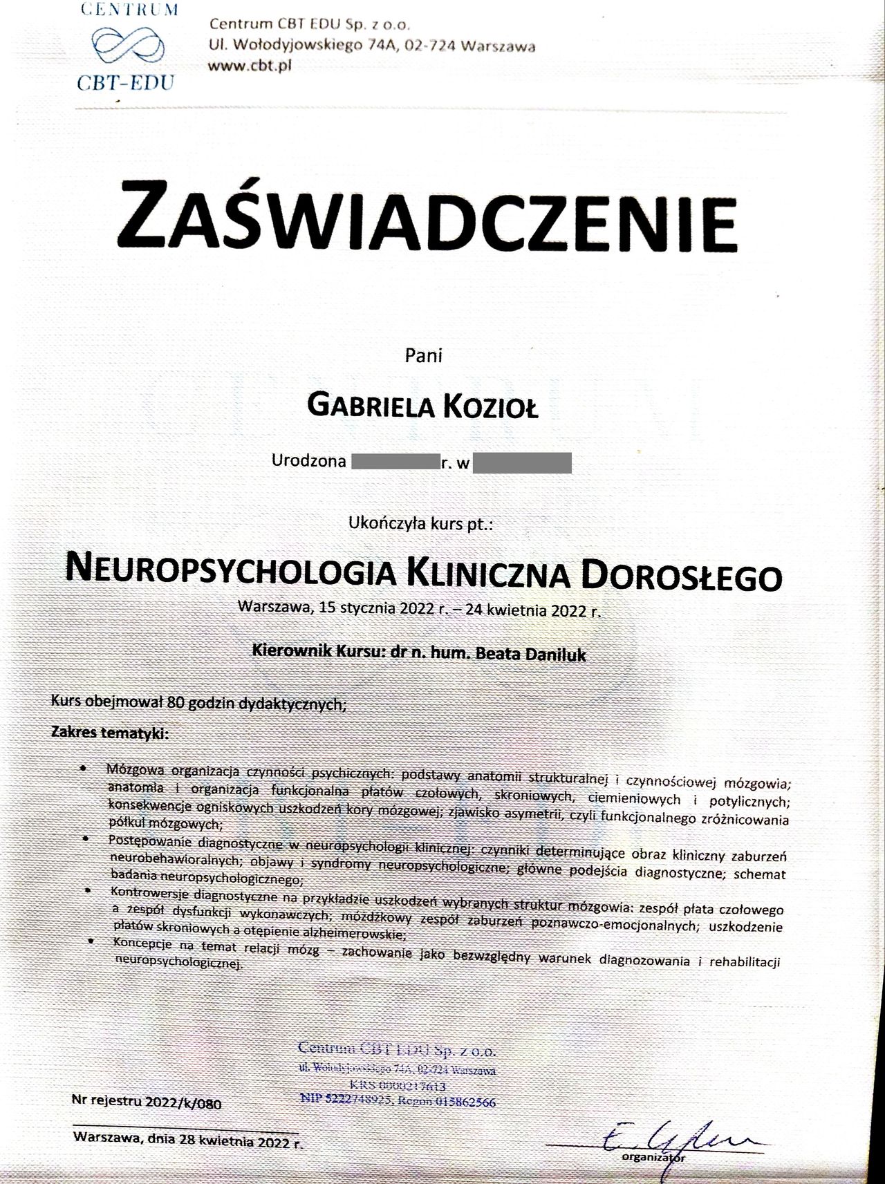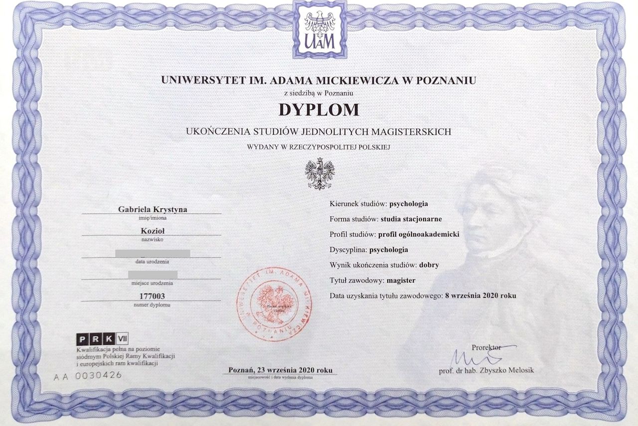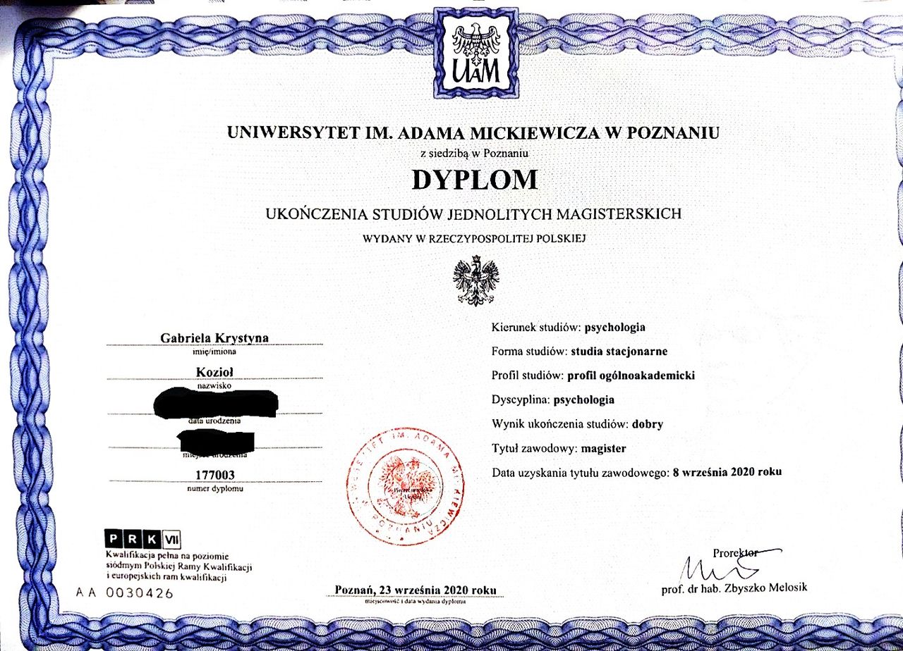 Jestem również magistrem psychologii z ukończonymi dwoma specjalnościami: psychoterapia zaburzeń psychicznych oraz seksuologia kliniczna.