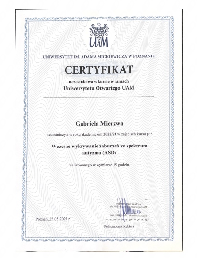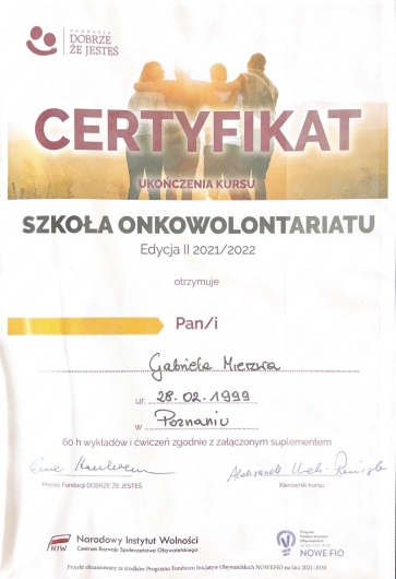 Współpraca z Panią Gabrielą jest niezwykle wartościowym doświadczeniem. Już od pierwszego spotkania dało się odczuć jej ogromne zaangażowanie oraz wyjątkową empatię. Zdecydowanie polecam ją jako specjalistkę, która swoim profesjonalizmem, empatią i oddaniem pomaga skutecznie zmierzyć się z wyzwaniami.
