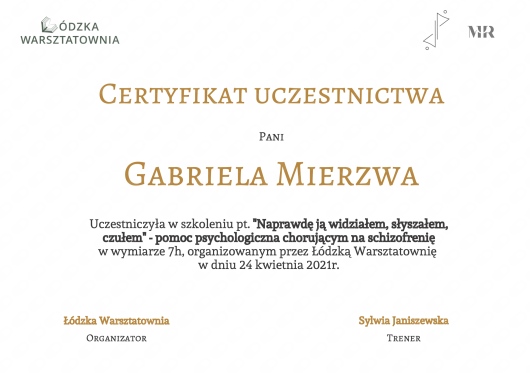 Dziękujemy za opinię. Cieszymy się, że spotkania z Panią Gabrielą były profesjonalne i dały poczucie wsparcia.