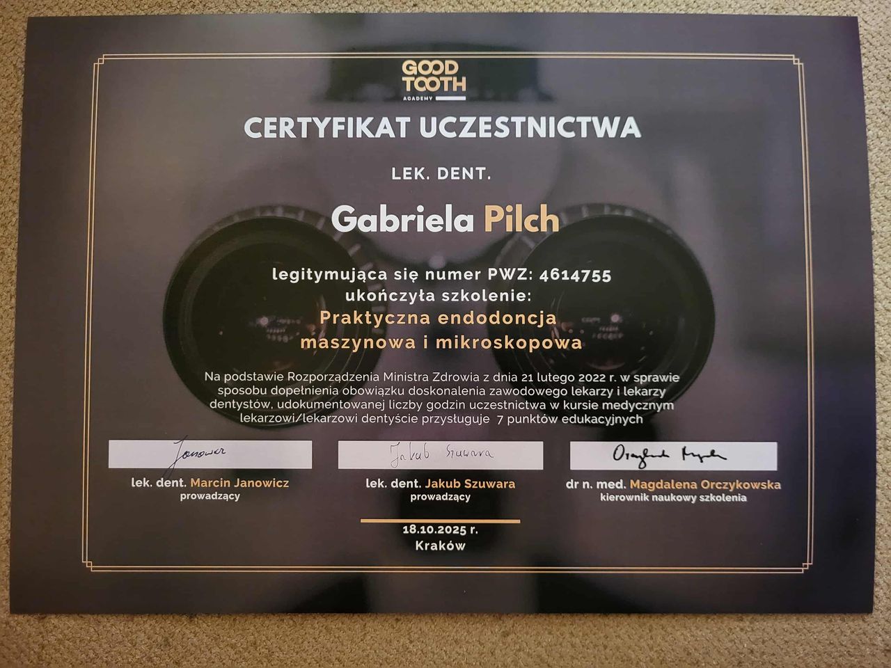Nieustannie poszerzam swoją wiedzę i umiejętności na kursach zawodowych.