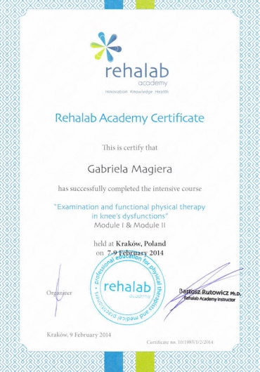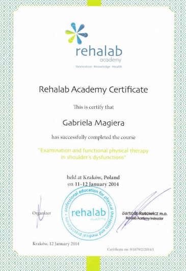 Jako fizjoterapeuta i terapeuta manualny, jestem pasjonatką zdrowego i bezpiecznego ruchu. Uważam, że wysiłek fizyczny powinien być dokładnie analizowany, w celu uniknięcia kontuzji i poprawienia efektywności oraz wydolności organizmu. W terapii stawiam na eliminacje problemu, zapobieganie nawrotom, poprzez naukę samodzielnej kontroli ciała i odpowiednio dobrany trening indywidualny. Najważniejsza jest dokładna diagnoza - każde schorzenie ma swoją przyczynę, trzeba tylko dokładnie poszukać. Spotkajmy się w gabinecie! Zapraszam!