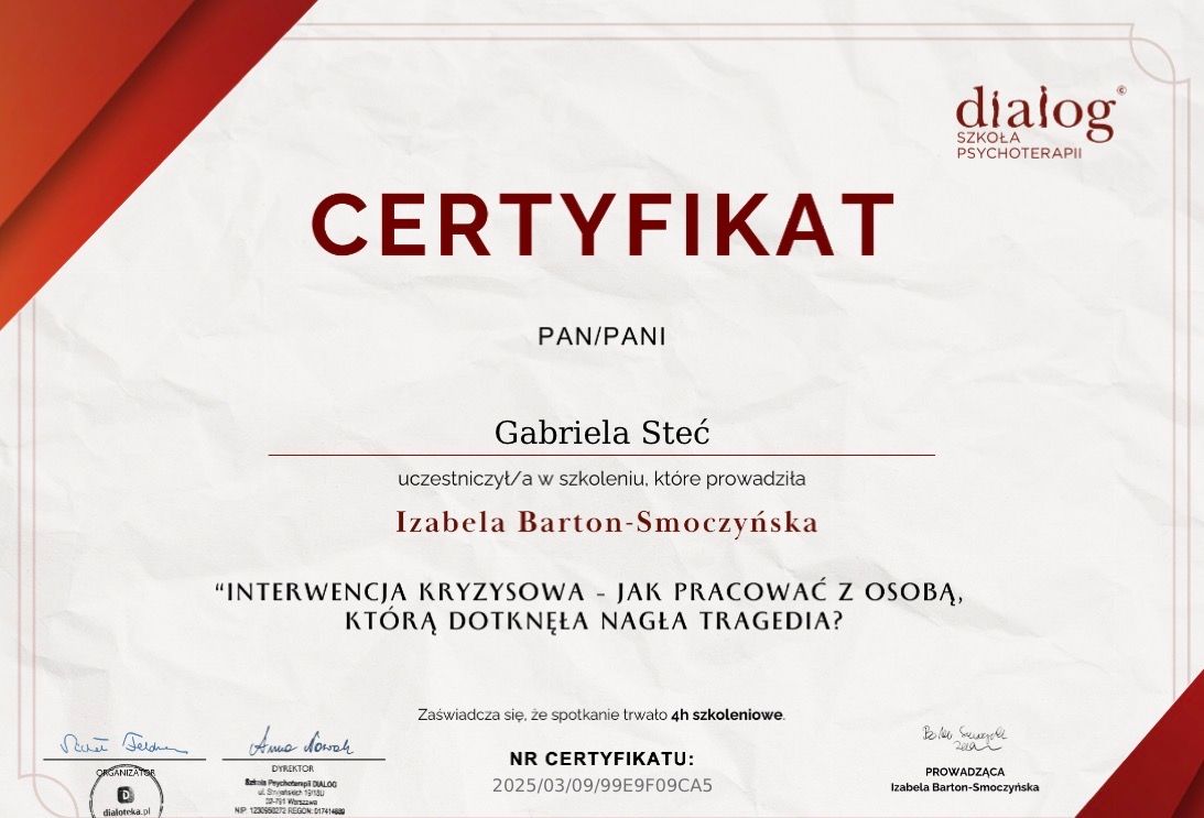 • Gabriela Steć Gabinet Psychologiczny • Psychoterapia •
