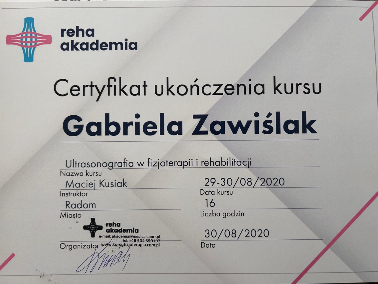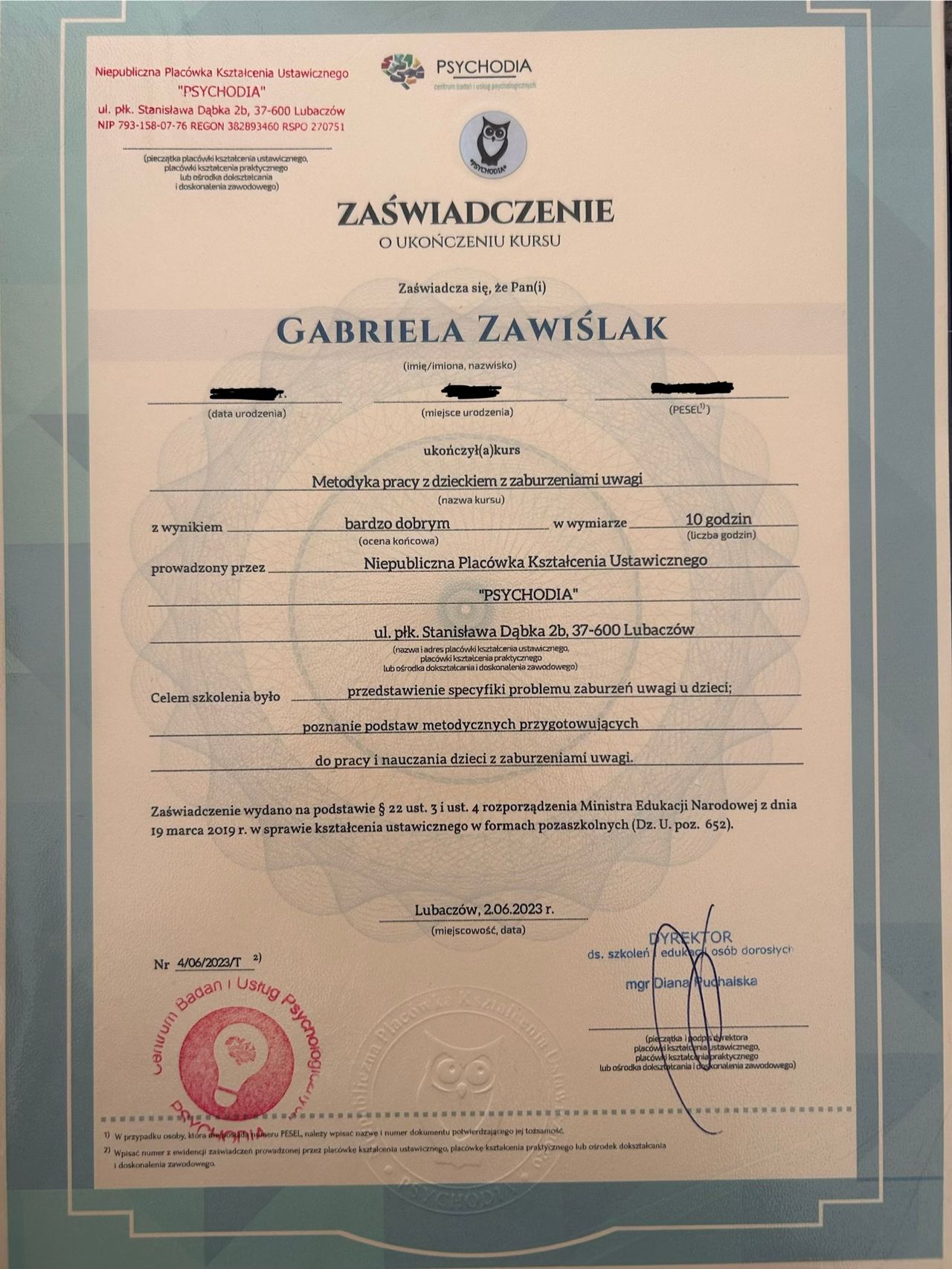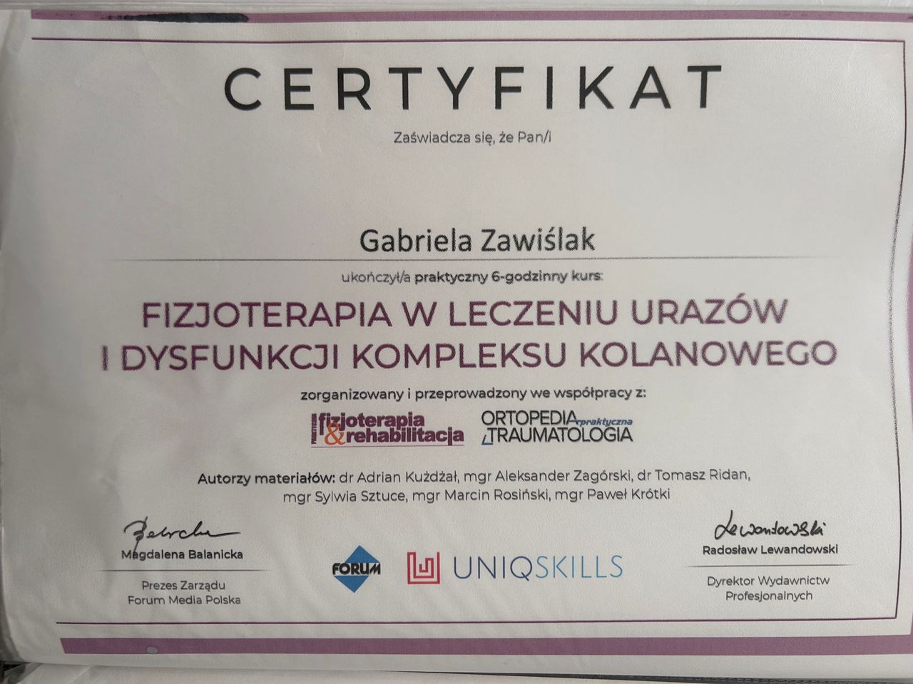 Ukończyłam liczne kursy takie jak np.: