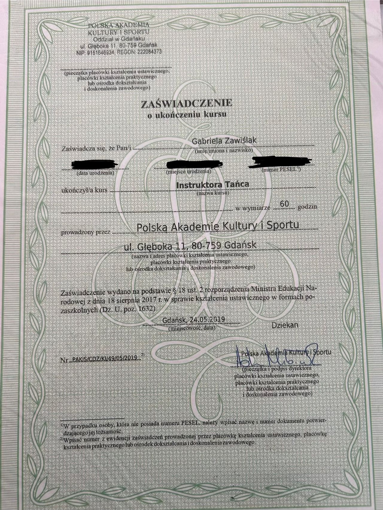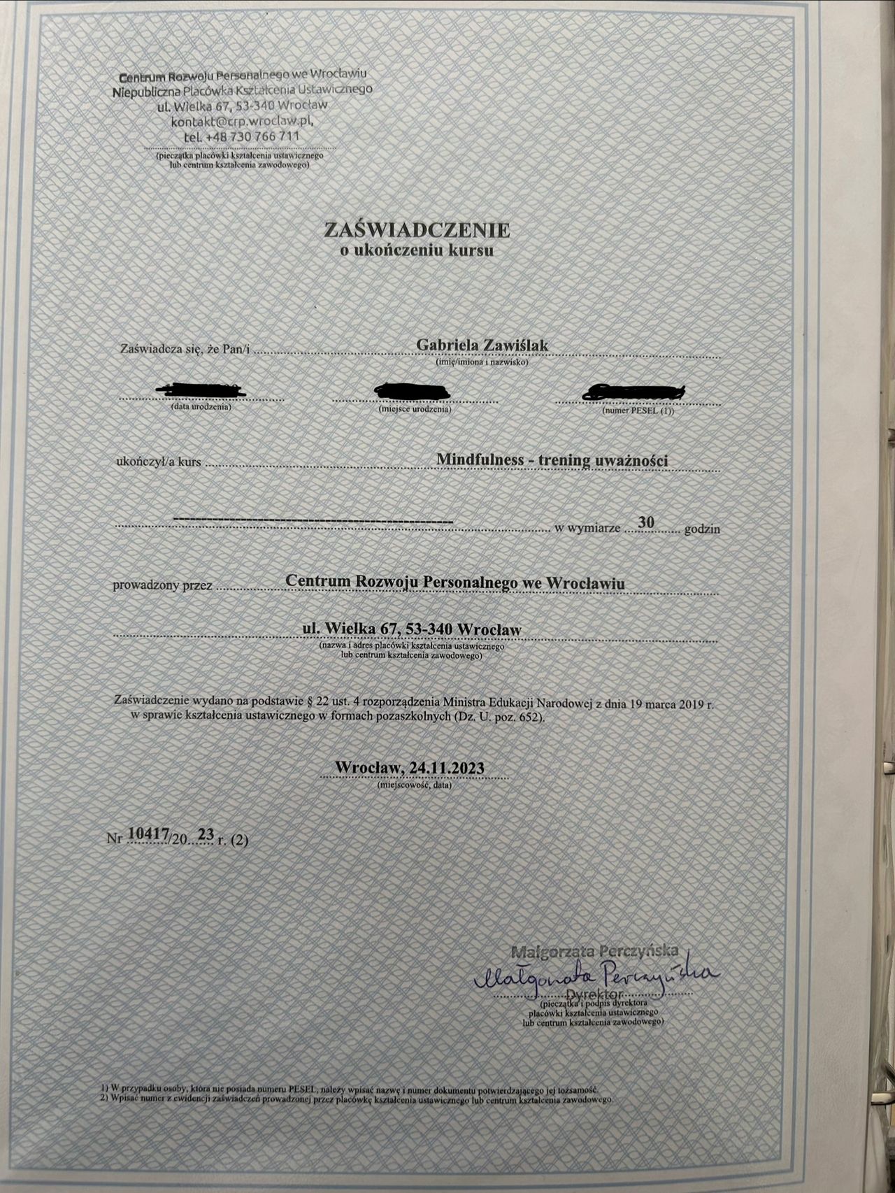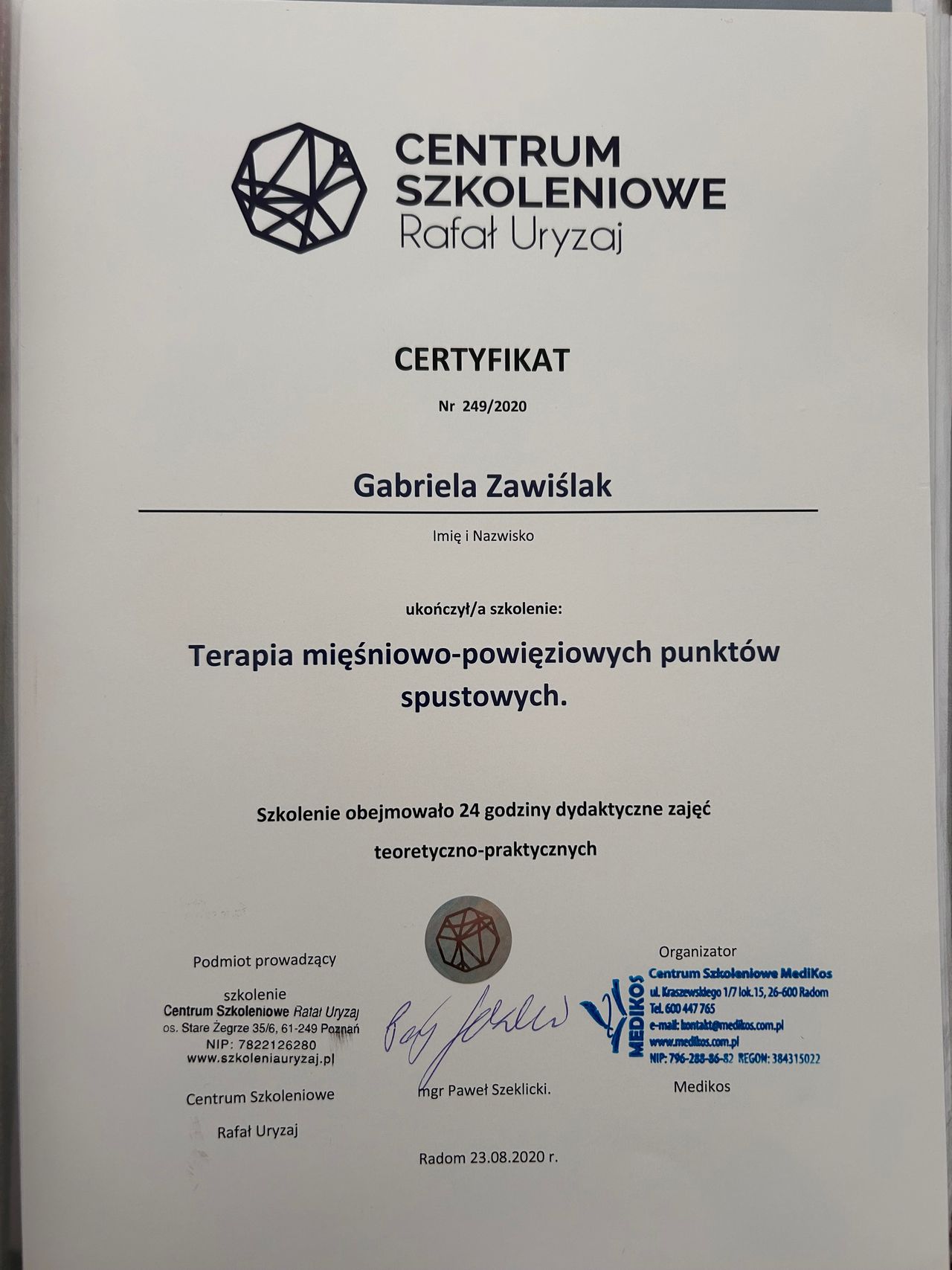 Ukończyłam liczne kursy takie jak np.: