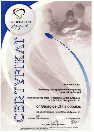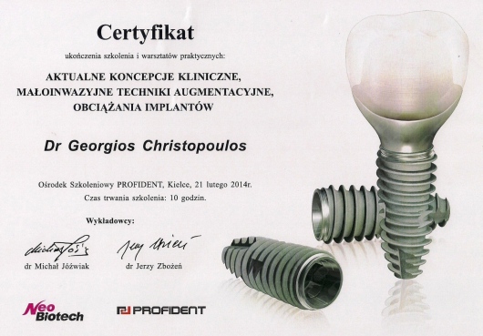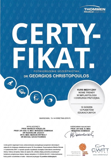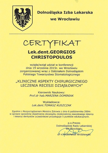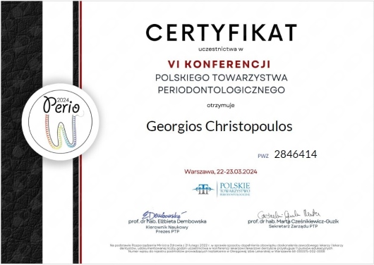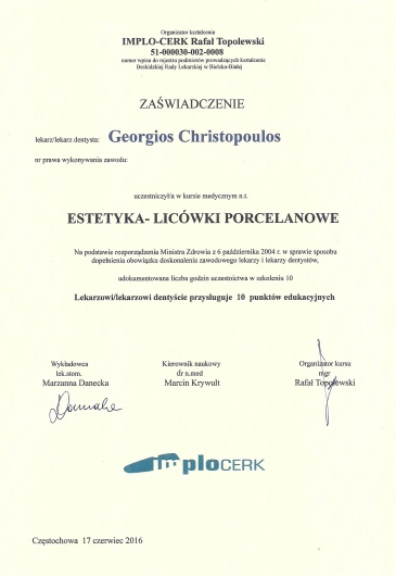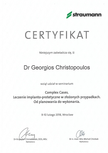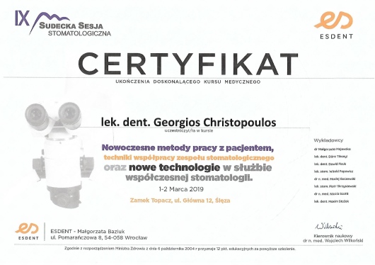 Ogromne podziękowania dla doktora Georgios Christopoulos. Zdecydowanie najlepszy stomatolog u jakiego byłam. Bardzo kompetentny, miły, cierpliwy. Wszystko dokładnie tłumaczy. Czułam się bardzo zaopiekowania. A mój zabieg był naprawdę trudny (przeszczep dziąsła). Polecam z całego serca!