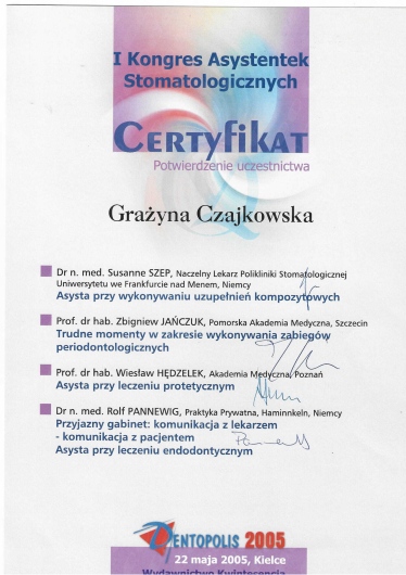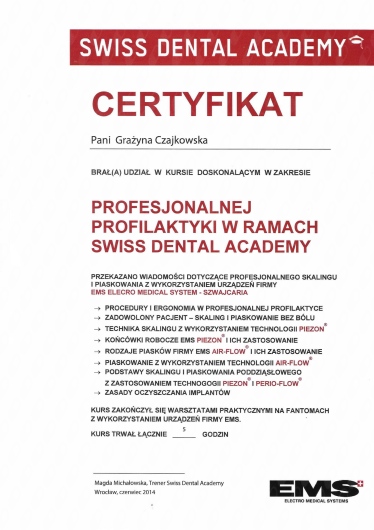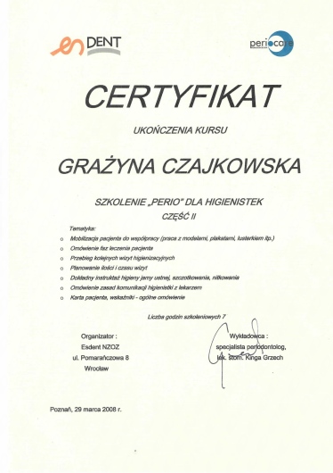 Pani Grażyna jest najlepszą higienistką, z jaką miałam do czynienia - jest profesjonalna, świadczy usługi na najwyższym poziomie, tłumaczy kolejne etapy zabiegu, jest bardzo zaangażowana w swoją pracę, zawsze dba o komfort pacjenta. Polecam!