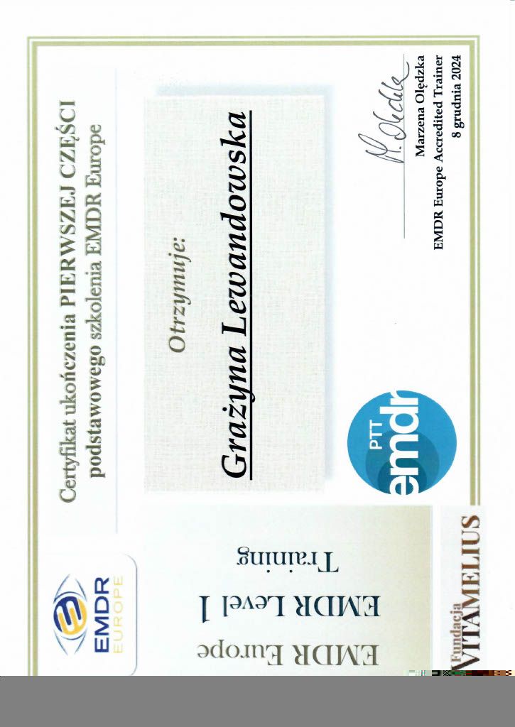 Pani Grażyna od samego początku pokazała mi, jak ważne jest w terapii zaufanie. Zostawiła mi wybór, a ja poczułam, że mogę jej zaufać i podjęłam się terapii, która okazała się być najlepszym prezentem, który mogłam dać samej sobie. Lekko nie było, ale wiedziałam, że mogę liczyć na wsparcie, że jestem w dobrych rękach i mimo że czasem było trudno, to czułam, jak się zmieniam. To był wyjątkowo dobry czas, o wiele lepiej mi się żyje, a to jest moim zdaniem najlepsza rekomendacja, dlatego polecam „moją” terapeutkę, a nawet „przekazuję dalej” tym, którzy potrzebują profesjonalnej pomocy. Do tego pani Grażyna jest dobrą, uważną i czułą osobą, uśmiechniętą, a gdy jest na to przestrzeń – z poczuciem humoru pomaga wyjść z tego, co trudne.