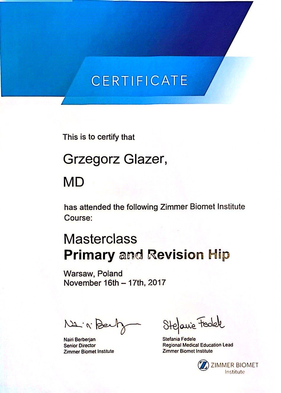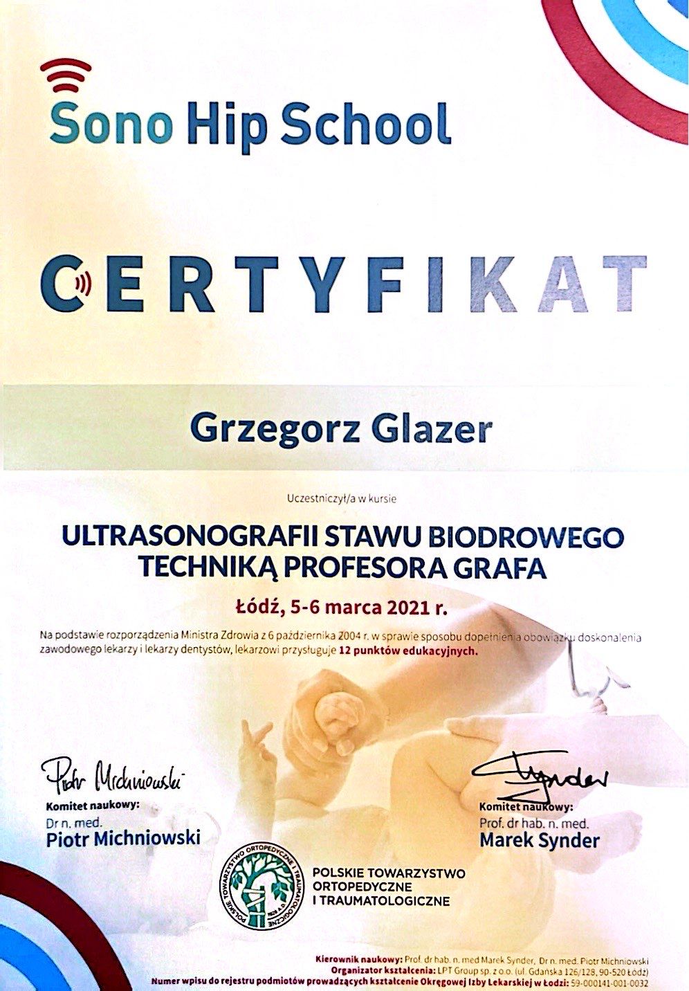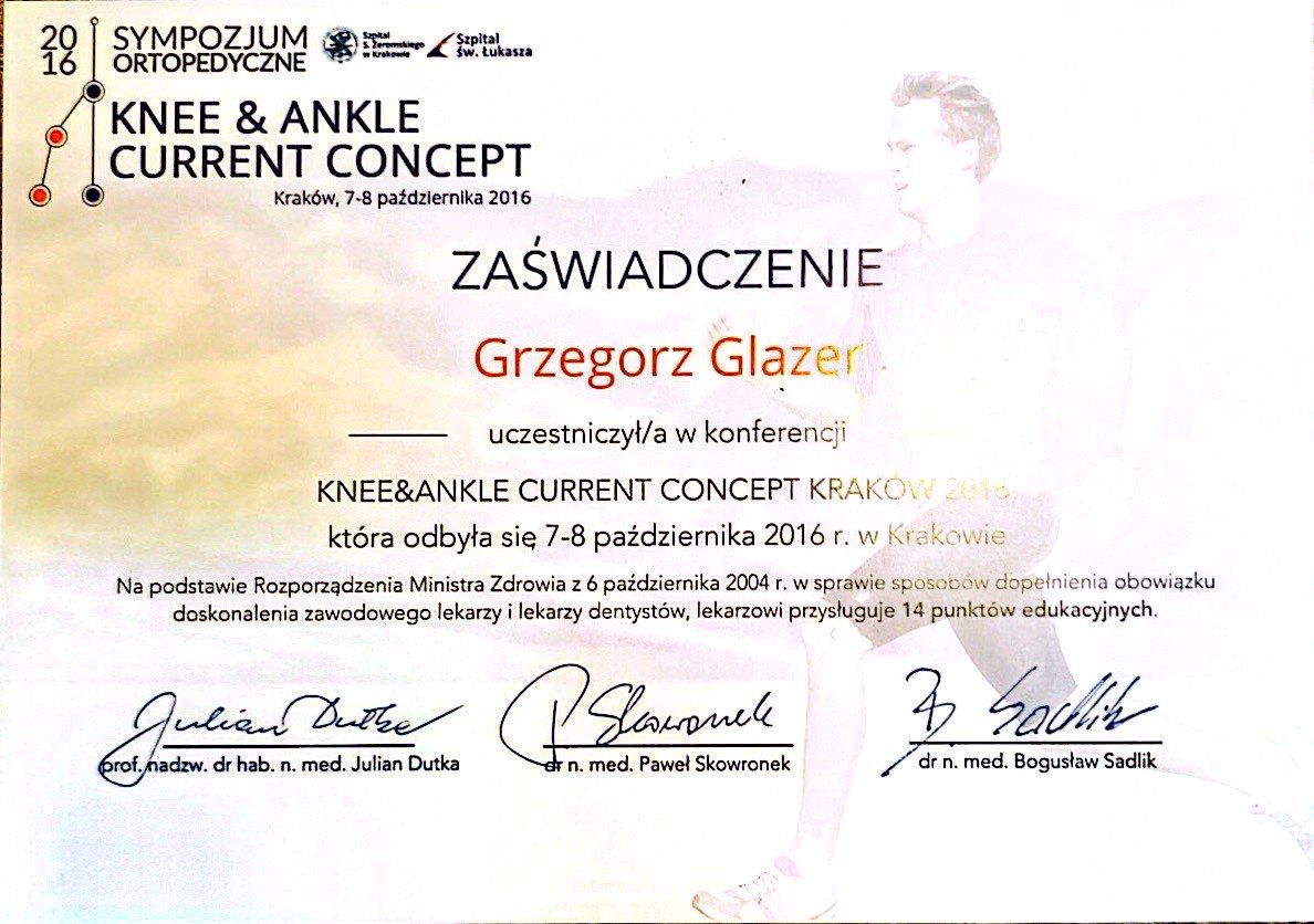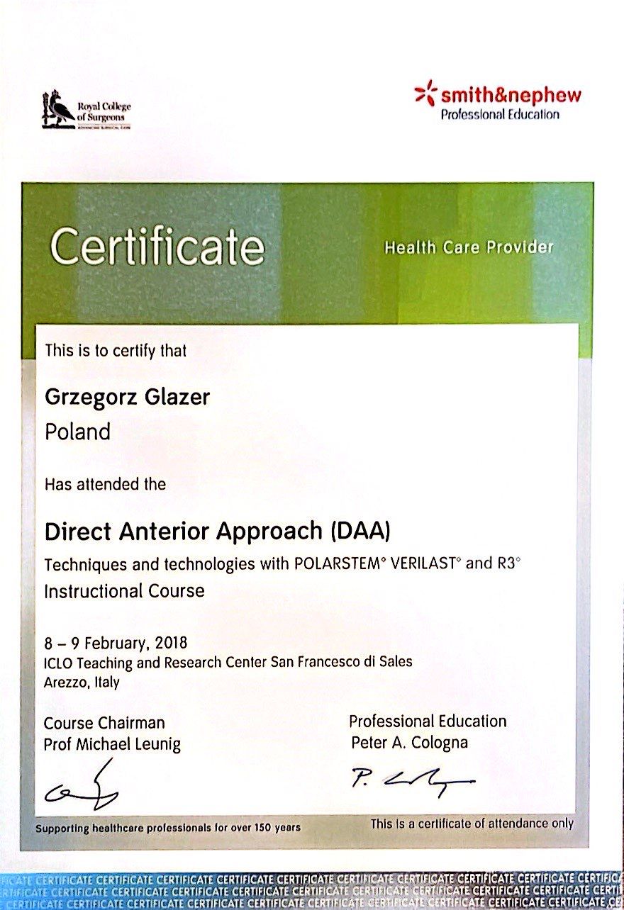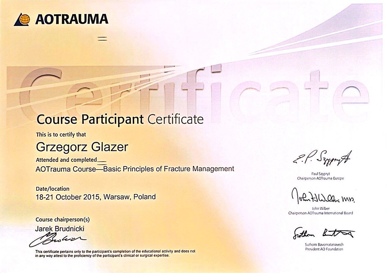Nazywam się Grzegorz Glazer i jestem lekarzem specjalistą w dziedzinie ortopedii i traumatologii narządu ruchu. Ukończyłem studia na II Wydziale Lekarskim z Oddziałem Anglojęzycznym Uniwersytetu Medycznego w Lublinie w 2011 roku, uzyskując dyplom z wynikiem bardzo dobrym.