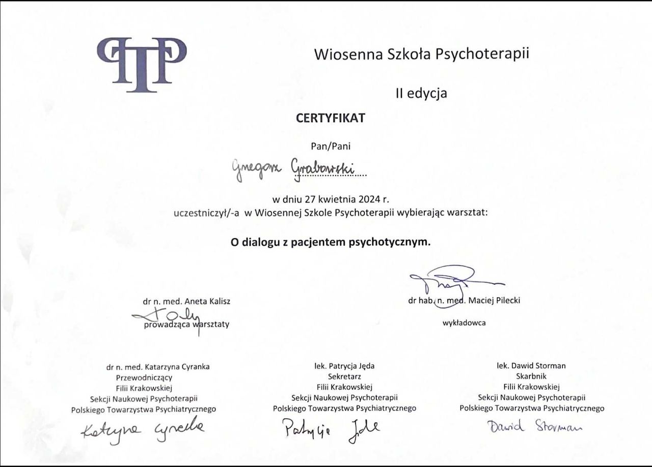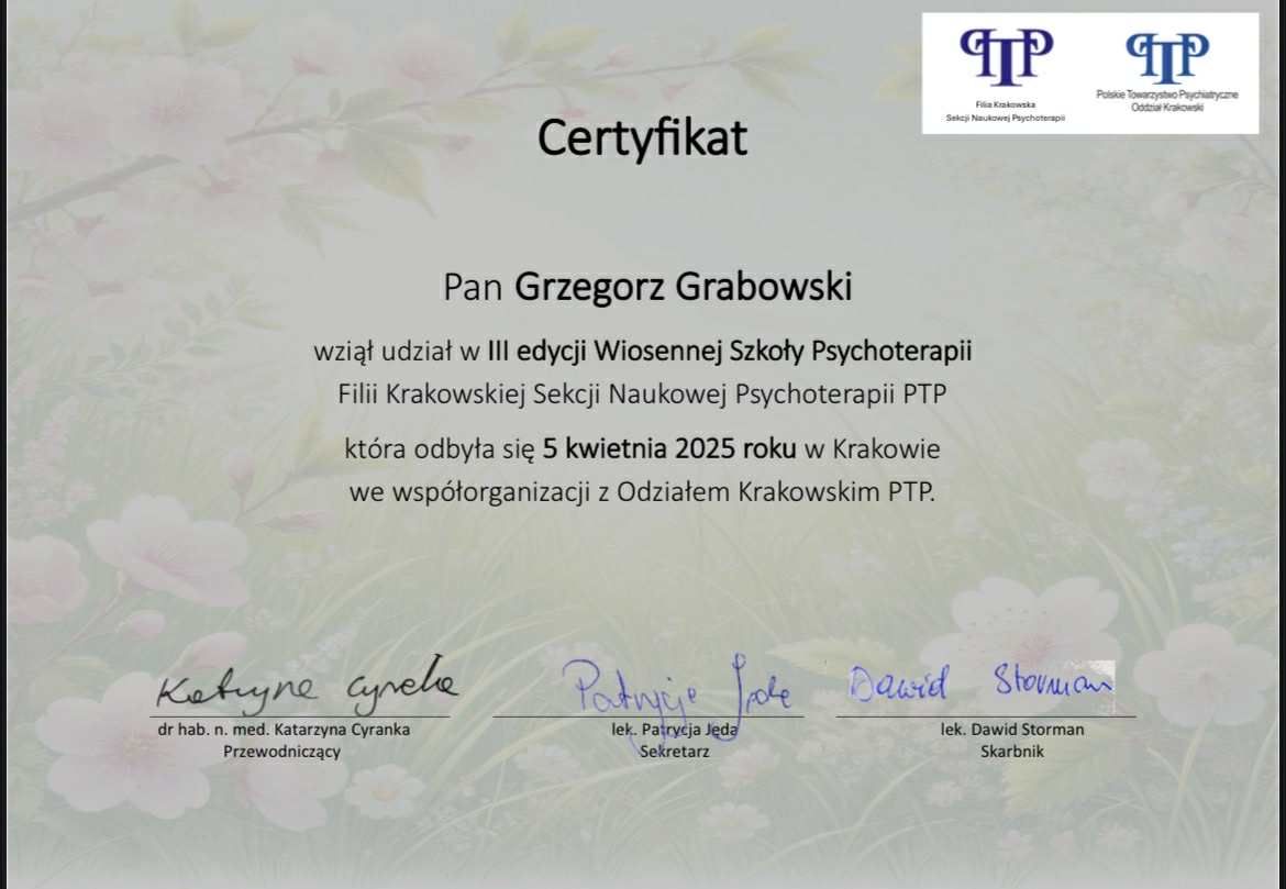 Jesteś już po wizycie u mgr Grzegorz Grabowski? Daj znać, co myślisz. Inni pacjenci będą wdzięczni za pomoc w wyborze najlepszego specjalisty.