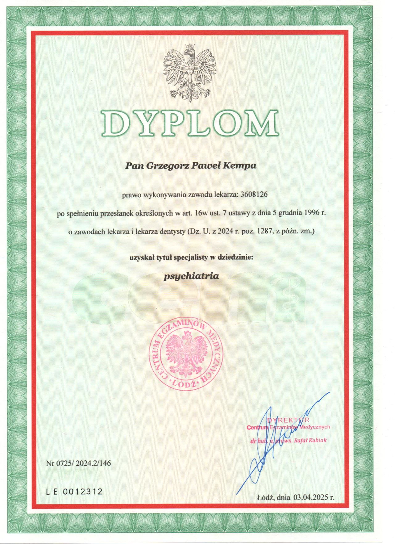 Czy Grzegorz Kempa przyjmuje online, bez konieczności pojawiania się w placówce?Tak, Grzegorz Kempa oferuje konsultacje online. Wybierz opcję „konsultacja online” przy umawianiu wizyty, a zobaczysz dostępne terminy.