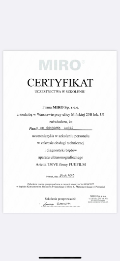 Z całego serca polecam USG u tego Pana doktora. Pełne zaangażowanie, dokładność w badaniu, bez pośpiechu. Po badaniu szczegółowe wyjaśnienie wszystkiego. Jestem pod ogromnym wrażeniem i z przyjemnością będę wracać na kontrolne badania. Polecam!