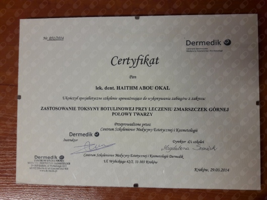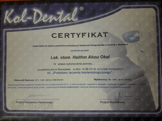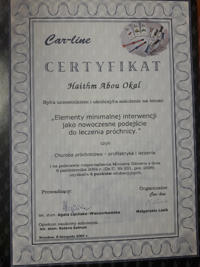 Jaki jest zakres porad oferowanych przez Haitham Abou Okal?Haitham Abou Okal to stomatolog, lekarz wykonujący zabiegi medycyny estetycznej. Na podstawie swojego doświadczenia i wykształcenia Haitham Abou Okal oferuje usługi takie jak: leczenie kanałowe, leczenie próchnicy, Wybielanie zębów, protezy, badania stomatologiczne, stomatologia estetyczna, usuwanie kamienia nazębnego, korony porcelanowe, ekstrakcja zęba, protezy nylonowe.