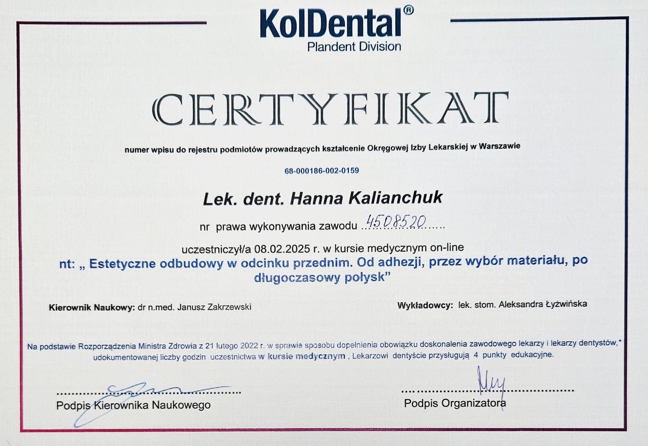 lek. dent. Hanna Kalianchuk