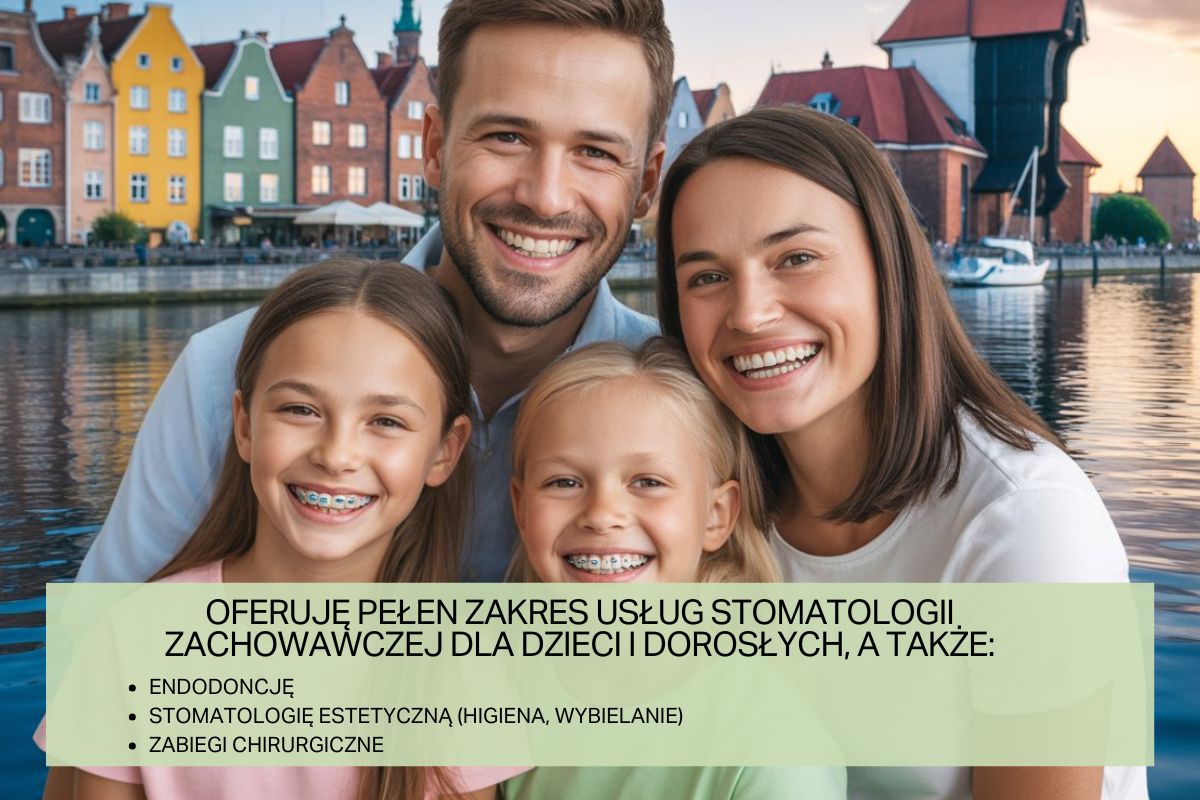 Zapraszam wszystkie dzieci na darmowe przeglądy stomatologiczne, leczenie zachowawcze dzieci i dorosłych, leczenie kanałowe oraz na zabiegi chirurgiczne. Również higiena zębów i higiena z aparatem ortodontycznym. Запрошую всіх дітей на безкоштовні стоматологічні огляди, а також на терапевтичне лікування дітей та дорослих, лікування каналів і хірургічні процедури.