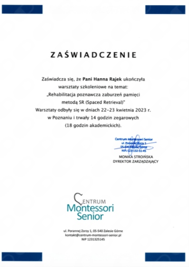 Pani Hanna jest fantastycznym fachowcem - skorzystałam z jej pomocy w psychoedukacji przewidzianej dla osób z ADHD. Zajęcia były systematyczne, dostosowane do moich potrzeb i możliwości, a pani Hanna podpowiedziała mi wiele świetnych rozwiązań, z których już z powodzeniem korzystam i widzę pozytywne efekty. Pani Hanna jest osobą bardzo życzliwą i empatyczną, a jednocześnie konkretną, dzięki czemu czas każdej edukacji był bardzo fajnie rozplanowany i zagospodarowany, a ja sama czułam się zaopiekowana. Polecam w każdym szczególe zarówno samą psychoedukację jak i pracę z panią Hanną.