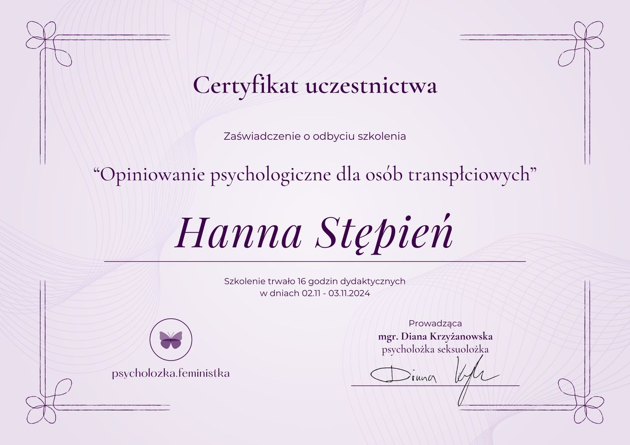 Czy Hanna Stępień przyjmuje online, bez konieczności pojawiania się w placówce?Nie, w tym momencie Hanna Stępień nie oferuje konsultacji online.