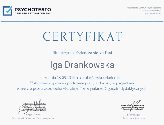Jesteś już po wizycie u mgr Iga Drankowska? Daj znać, co myślisz. Inni pacjenci będą wdzięczni za pomoc w wyborze najlepszego specjalisty.
