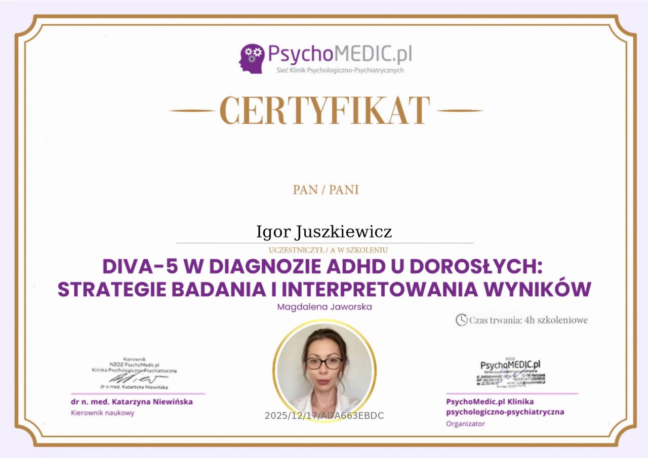 • Centrum Zdrowia Psychicznego MEDICO • badanie kwestionariuszem DIVA-5 •