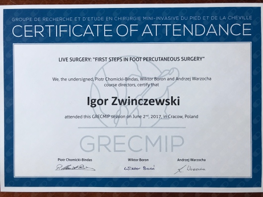 Wszystkie umawiane wizyty są odpłatne - wizyta kosztuje 250 zł w tym USG i RTG, blokada dostawową, punkcja stawu, odstawienie gipsu. Tel. rejestracji 504 242 745. Dużym plusem wizyty u nas jest leczniczo-diagnostyczny (nie tylko konsultacyjny) charakter wizyty: wykonujemy blokady, punktujemy staw, podajemy leki do stawu, zakładamy i zdejmujemy gipsy, zmieniamy opatrunki, szyjemy świeże i opracowujemy zaopatrzone rany i zmiany patologiczne, usuwamy szwy, etc. Ze względu na "chirurgiczny" charakter naszej pracy godzina wizyty umówionej przez internet jest godziną orientacyjną. Może wystąpić opóźnienie wejścia do gabinetu o około 20-30 min na zasadzie kolejki oczekujących w tym momencie. Prosimy wziąć to pod uwagę przed podjęciem decyzji o zarejestrowaniu się do nas na wizytę. Staramy się eliminować tego typu zdarzenia, tym niemniej prosimy o wyrozumiałość, jeżeli spotka Pani/Pana taka sytuacja. Nasze cyfrowe RTG znajduje się w placówce przy ul. Lipińskiego 7, konstrukcyjnie służy do RTG kończyn dolnych i górnych (bez miednicy i kręgosłupa). Zakład prowadzi dokumentację elektronicznie - konieczne jest zarejestrowanie się w Rejestracji po wejściu do Placówki. Wpisanie celu wizyty przypadku rejestracji przez internet w niektórych przypadkach pozwala doradzić wykonanie na przykład badań krwi bez kosztów dodatkowej wizyty lub odradzić wykonanie dodatkowego RTG - mamy na miejscu. Konsultacje ortopedyczne dorosłych i dzieci prowadzimy w zakresie: - operacji paluchów koślawych, - operacji zespołu cieśni kanału nadgarstka, - operacji usunięcia wszelkiego rodzaju zmian skórnych i podskórnych, - urazów i stanów pourazowych narządów ruchu, - kontuzji sportowych oraz ich następstw, - schorzeń i dysfunkcji narządów ruchu - konsultacje w urazach i stanach pourazowych u dzieci, - leczenie złamań i ich powikłań - leczenie zespołów bólowych - kwalifikacje do leczenia operacyjnego narządu ruchu.