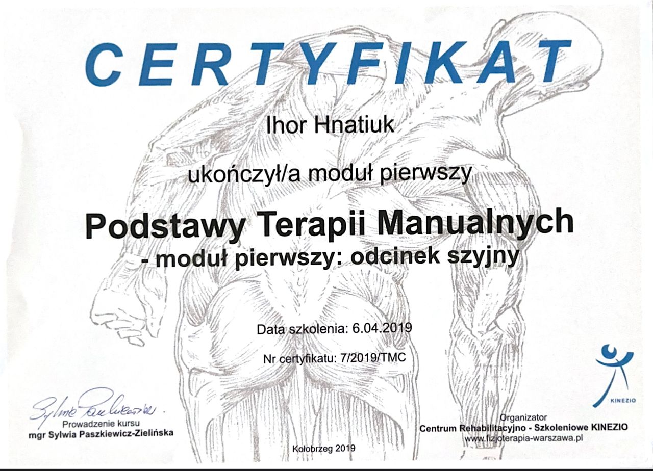 Jaki jest zakres porad oferowanych przez Ihor Hnatiuk?Ihor Hnatiuk to fizjoterapeuta. Na podstawie swojego doświadczenia i wykształcenia Ihor Hnatiuk oferuje usługi takie jak: konsultacja fizjoterapeutyczna, konsultacja fizjoterapeutyczna + USG, Fala uderzeniowa, masaż, Elektroliza EPTE, akupunktura, masaż starosłowiański brzucha wg Ogułowa, konsultacja fizjoterapeutyczna (pierwsza wizyta), Hirudoterapia, Masaż leczniczy.
