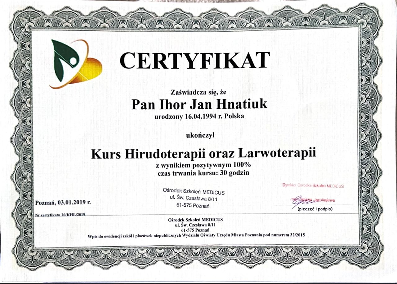 Bardzo pozytywne wrażenie po pierwszej wizycie. Pan Ihor bardzo kompetentny i zaangażowany. Zabiegi wykonuje z dużym wyczuciem o cierpliwością. Serdecznie polecam