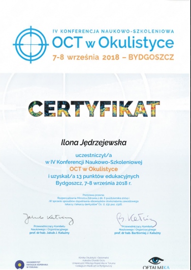 Jaki jest zakres porad oferowanych przez Ilona Jędrzejewska?Ilona Jędrzejewska to okulista. Na podstawie swojego doświadczenia i wykształcenia Ilona Jędrzejewska oferuje usługi takie jak: Badanie OCT siatkówki centralnej (plamki), konsultacja okulistyczna (pierwsza wizyta), Badanie w kierunku nużeńca, pakiet jaskra, kapsulotomia, irydotomia, OCT GCC – tomografia oka, badanie Angio-OCT, konsultacja okulistyczna.