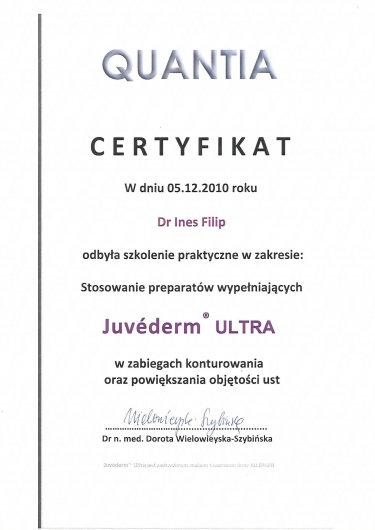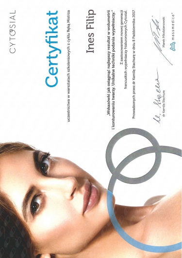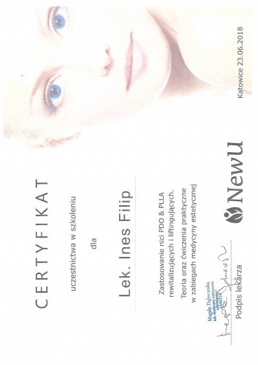 Przebyłam w zakresie wymienionych zabiegów szereg szkoleń i kursów potwierdzonych certyfikatami.