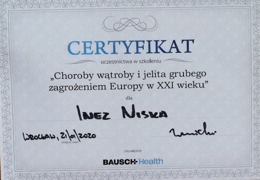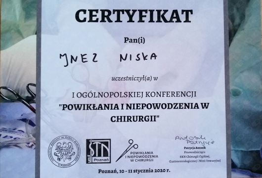 W wolnych chwilach uczestniczę w szkoleniach i kursach - “Co nowego z chirurgii”, webinaria “Czwartki chirurgiczne”, szkolenie z zakresu laparoskopowego leczenia przepuklin, warsztaty proktologiczne - to tylko niektóre, w których brałam udział.