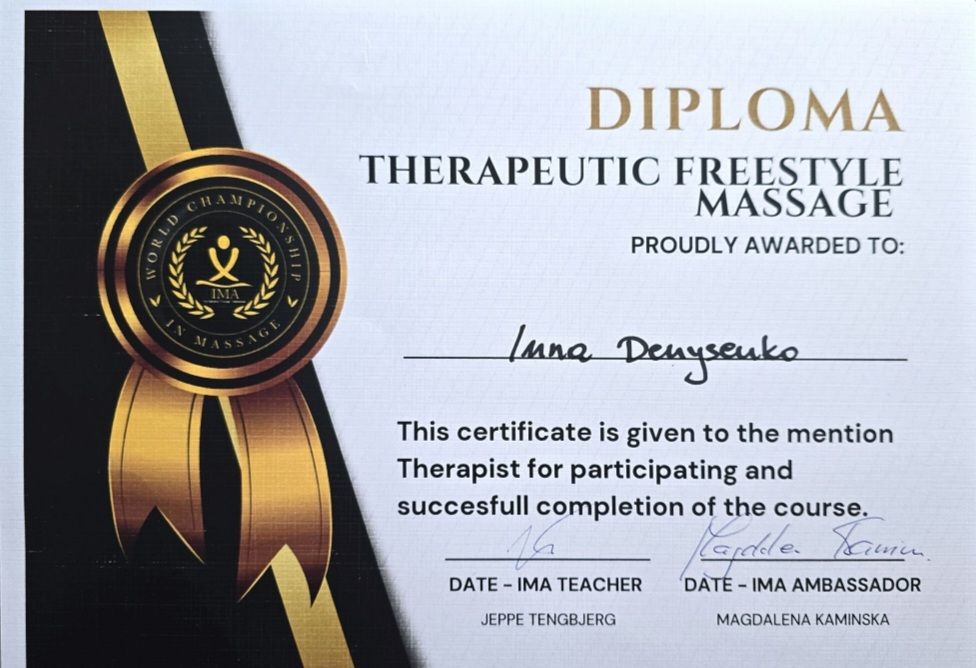 Od kilku lat systematycznie chodzę na masaz do Pani Inny, która potrafi doskonale odprężyć cialo i wszystkie napięcia pojawiające sie od pracy przy biurku czy przy treningach. Zawsze doradzi i podpowie, na masażach czuje ze jestem w dobrych rekach Gorąco polecam wszystkim kto chce zadbać o dobre samopoczucie i sprawność fizyczną.