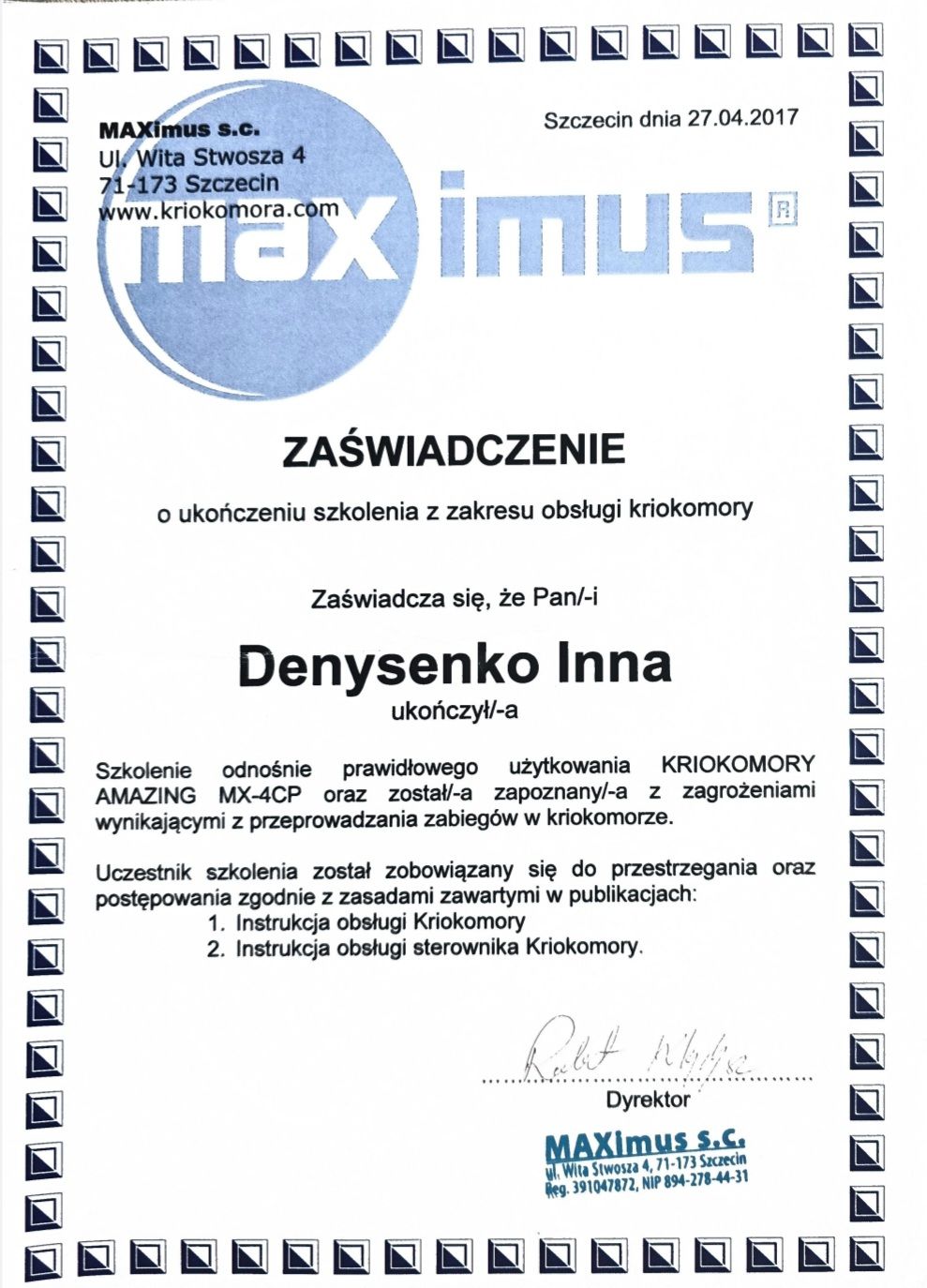 Gdzie Inna Denysenko ma swój gabinet?Inna Denysenko przyjmuje pod adresem: