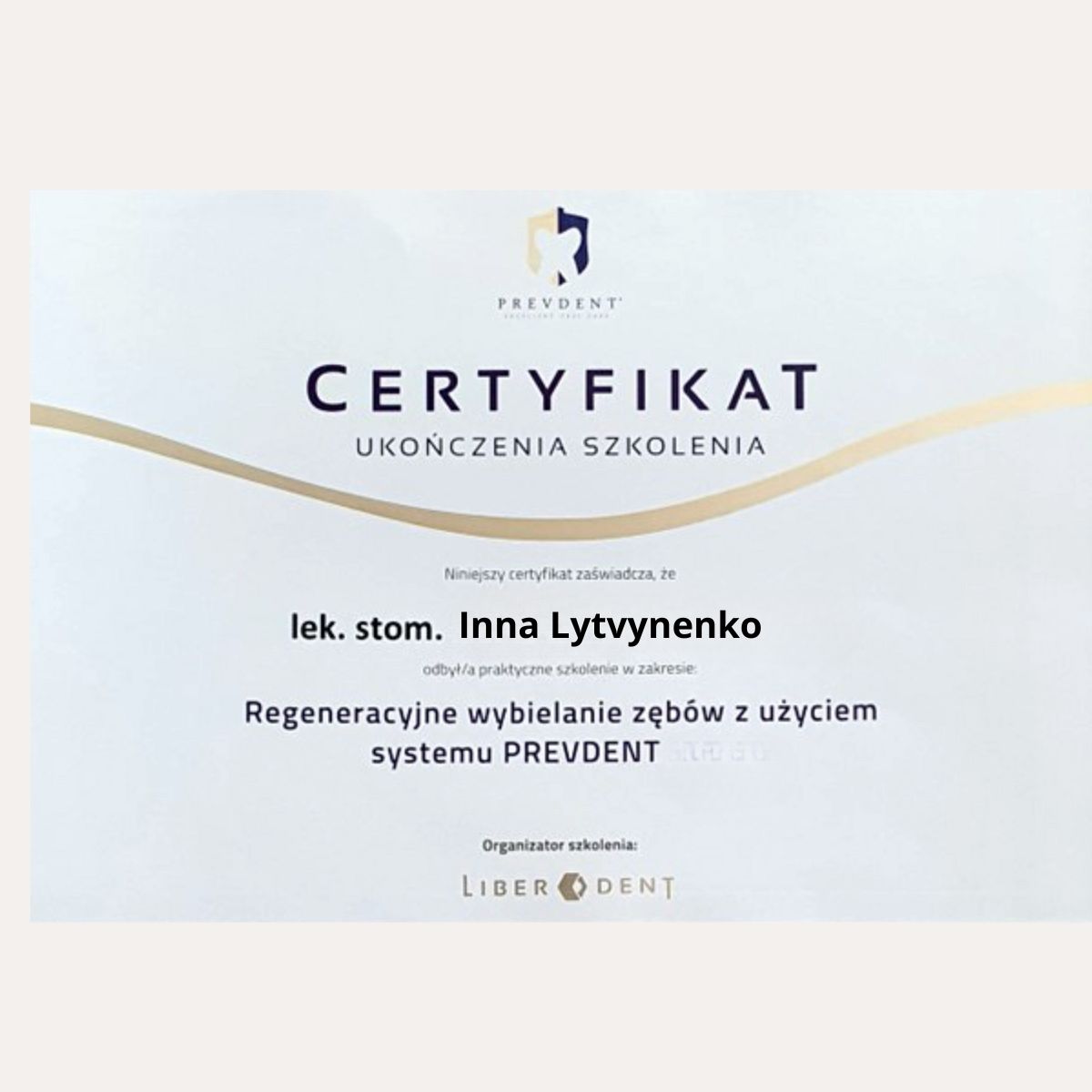 Nazywam się Inna Lytvynenko i jestem lekarzem dentystą z wieloletnim doświadczeniem w pracy z dorosłymi i dziećmi. Studia stomatologiczne ukończyłam w 2003 roku na Charkowskim Państwowym Uniwersytecie Medycznym, gdzie kształciłam się w latach 1998–2003.