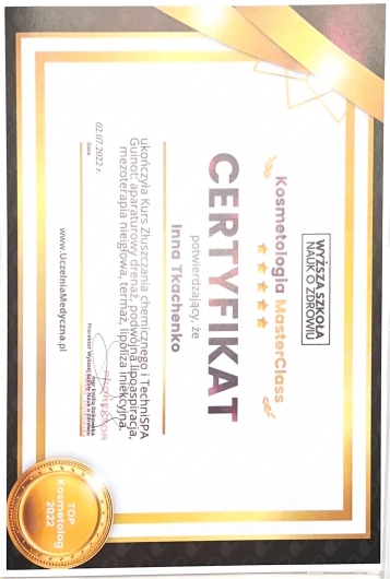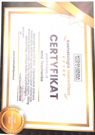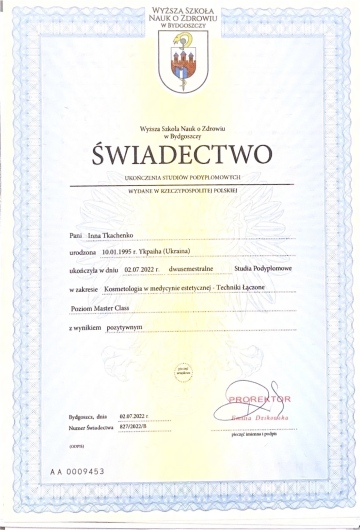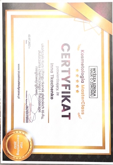 Serdecznie polecam Inna Tkachenko! Profesjonalne podejście, miła atmosfera i doskonałe efekty zabiegów. Dzięki jej doświadczeniu i trosce o klienta czułam się komfortowo i w dobrych rękach. Moja skóra wygląda teraz zdrowiej i promienniej! Na pewno wrócę na kolejne wizyty. Dziękuję!