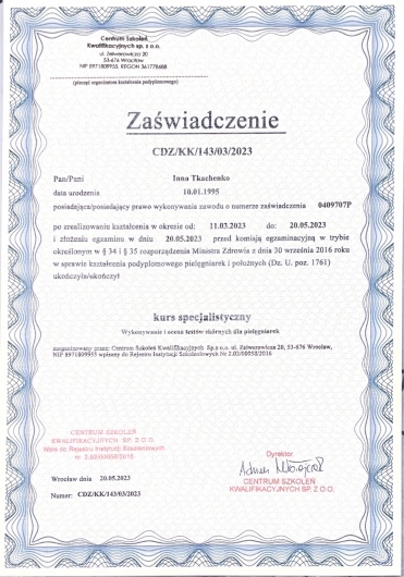 Dodatkowo poszerzyłam swoje kwalifikacje, uczestnicząc w ponad 10 specjalistycznych szkoleniach z kosmetologii, co umożliwia mi kompleksowe podejście do zdrowia i urody. Z pasją realizuję swoje zawodowe cele, łącząc wiedzę medyczną z nowoczesnymi technikami kosmetologicznymi.