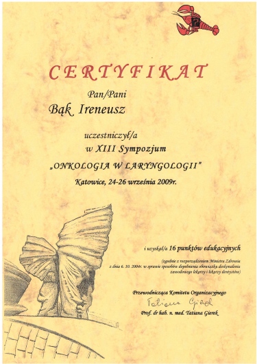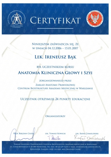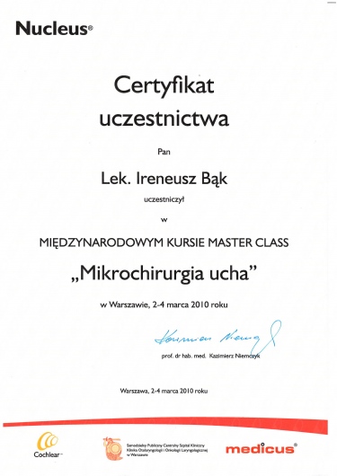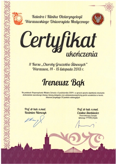 Uczestniczył w wielu kursach zagranicznych z zakresu laryngologii i otolaryngologii.