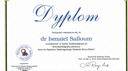 Międzynarodowy certyfikat Fetal Medicine Foundation (FMF) – nr 131149,