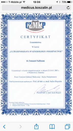 Certyfikat Sekcji Ultrasonograficznej Polskiego Towarzystwa Ginekologicznego (PTG),