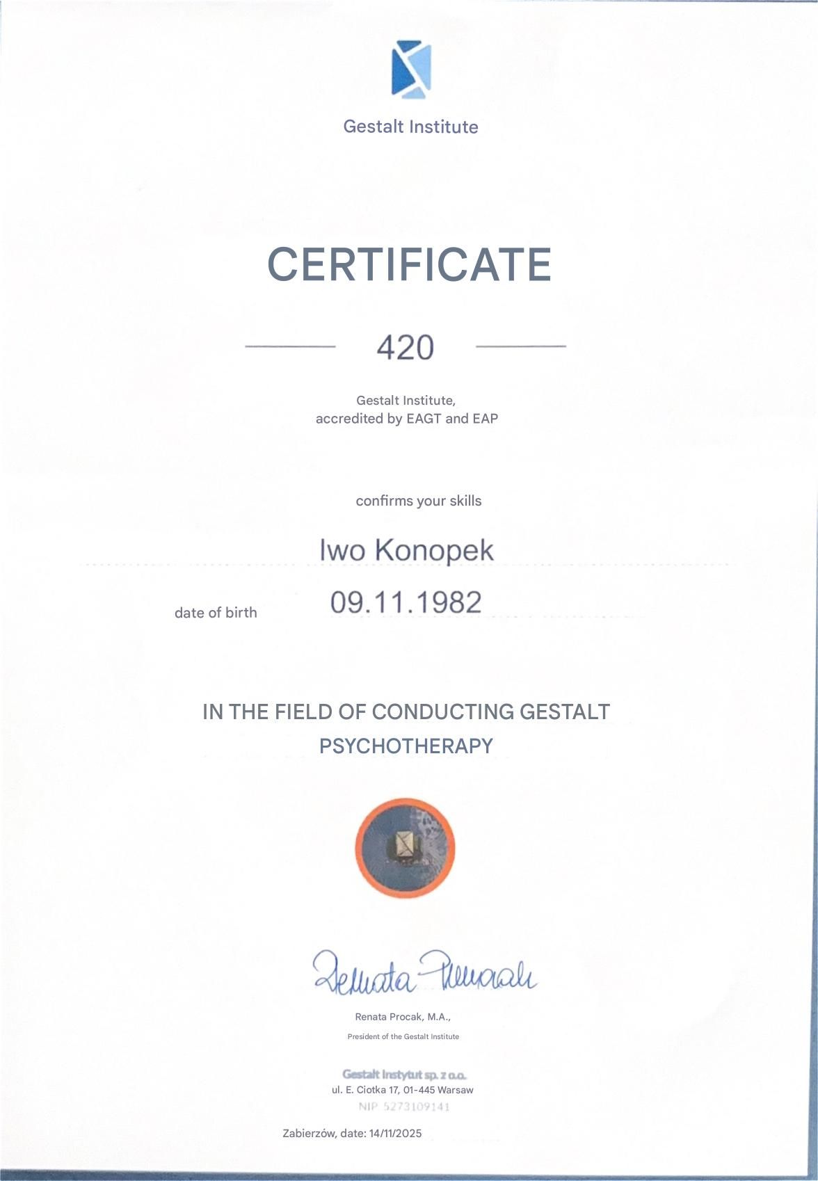 Jestem po półrocznej terapii u Iwo i uważam, że pójście do niego to była jedna z lepszy decyzji w moim życiu. Każde spotkanie to spora dawka wiedzy, która pozwoliła mi odkryć siebie. Sesje zawsze odbywały się w luźnej, w zasadzie przyjacielskiej atmosferze, ale jedocześnie były bardzo profesjonalne. Polecam i jeszcze raz dziękuję!