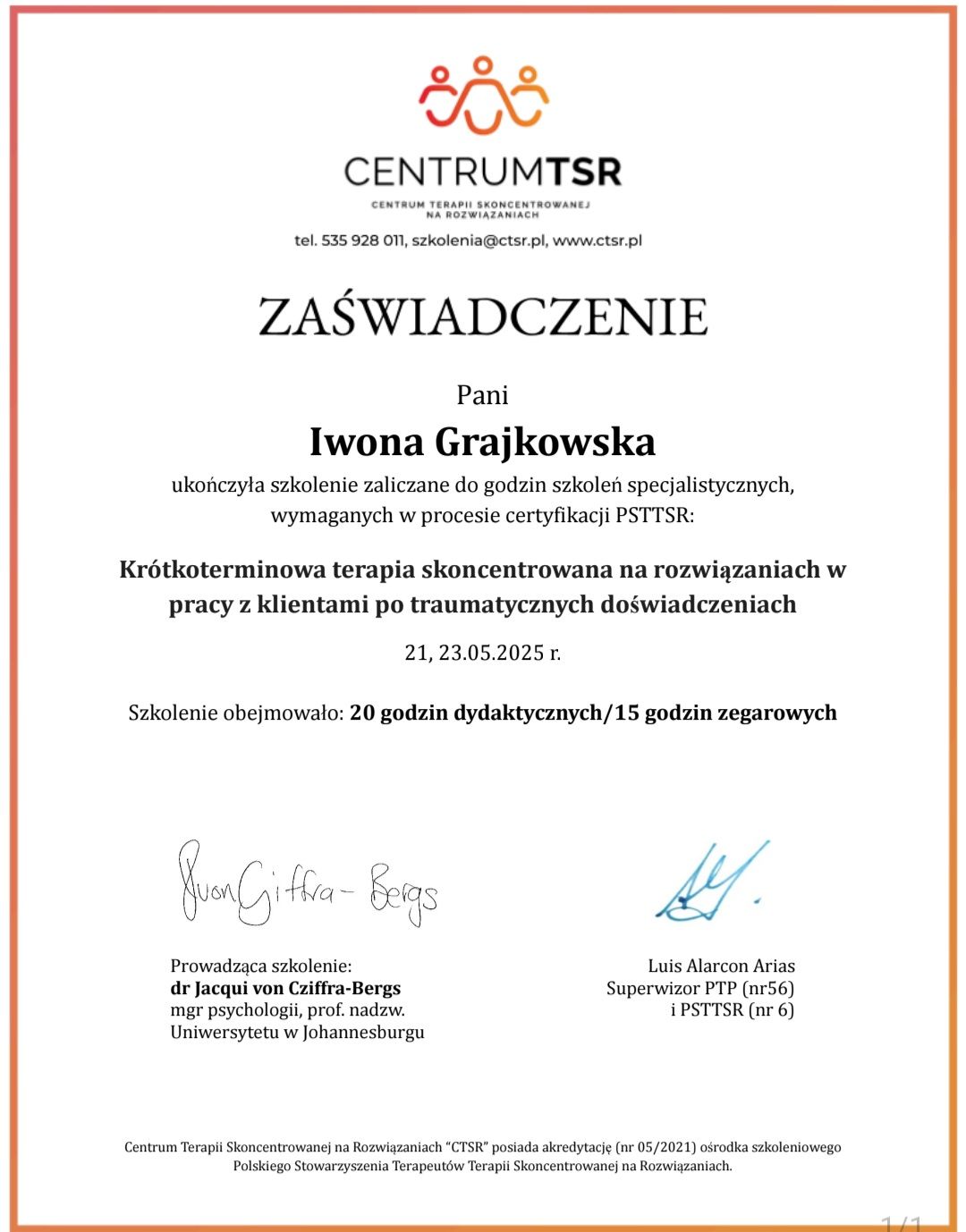 Jestem magistrem psychologii ze specjalnością psychologii klinicznej i zdrowia. Prowadzę Terapię Skoncentrowaną na Rozwiązaniach (TSR), konsultacje psychologiczne, poradnictwo psychologiczne, psychoedukację oraz zajęcia z elementami arteterapii i TUS. Pracuje z osobami dorosłymi i młodzieżą. Przyjmuję w gabinecie w Piasecznie i Warszawie. Posiadam rownież doświadczenie w pracy na infolinii wsparcia emocjonalnego dla dorosłych, prowadzenia zajęć psychoedukacyjnych oraz TUS (Treningu Umiejętności Społecznych) dla dzieci w spektrum autyzmu. Skończyłam całościowe szkolenie I i II stopnia z Terapii Skoncentrowanej na Rozwiązaniach (w akredytowanym przez PSTTSR ośrodku, którego jestem członkiem) i aktualnie uczestniczę w dalszym procesie certyfikacji, szkoleniach z interwencji kryzysowej oraz poradnictwa psychologicznego. W pracy stawiam na przyjazną i empatyczną komunikację, najważniejszy jest dla mnie szacunek i akceptacja potrzeb każdego pacjenta. Prywatnie: mam 34 lata, tańczę tango argentyńskie w ramach hobby oraz stale podnoszę swoje umiejętności społeczne i interpersonalne, uczęszczając w różnego typu warsztatach rozwojowych. W trosce o Państwa dyspozycyjność, istnieje możliwość indywidualnego umówienia innych terminów spotkań, niedostępnych w kalendarzu na Znanym Lekarzu. W tym celu proszę o wiadomość prywatną. Zapraszam serdecznie do kontaktu :)