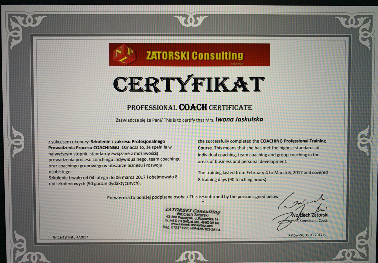 Jestem psychologiem ze specjalnością Psychologii klinicznej, trenerem, coachem i oligofrenopedagogiem. Czerpię garściami z tych wieloletnich doświadczeń zawodowych w pracy indywidualnej jak i grupowej. W swojej praktyce zawodowej kieruje się zasadami Kodeksu Etycznego Psychologa Polskiego Towarzystwa Psychologicznego.
