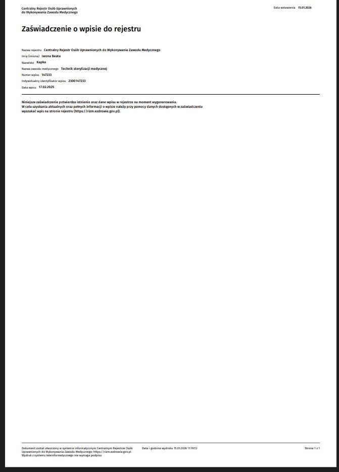 Dyplomowana Higienistka Stomatologiczna oraz Technik Sterylizacji Medycznej