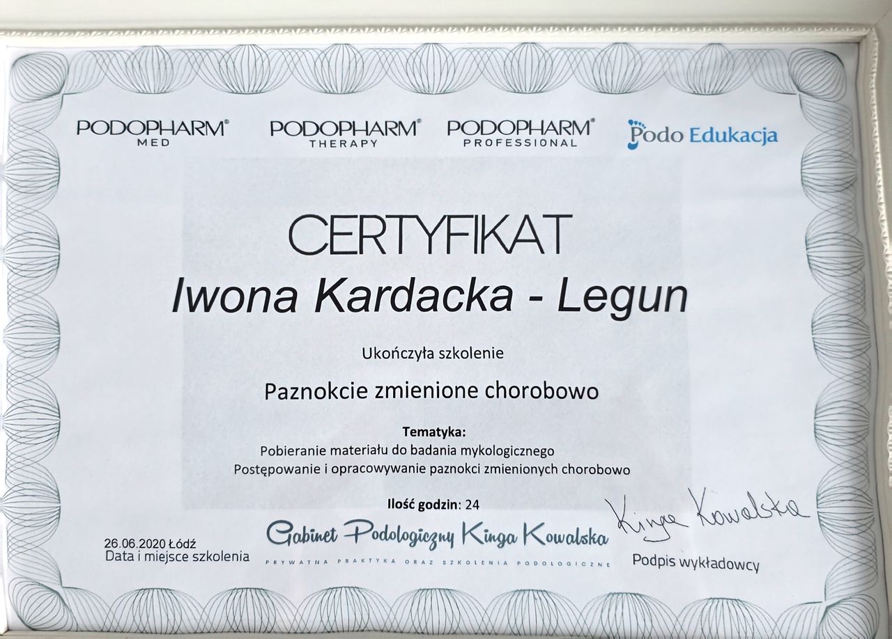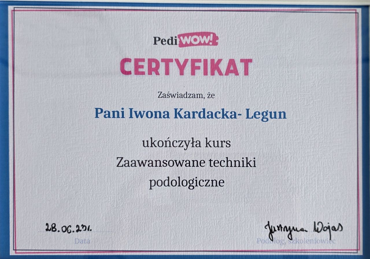 Jaki jest zakres porad oferowanych przez Iwona Kardacka-Legun?Iwona Kardacka-Legun to podolog. Na podstawie swojego doświadczenia i wykształcenia Iwona Kardacka-Legun oferuje usługi takie jak: usuwanie brodawek, usunięcie odcisku / modzeli, grzybica paznokci, Leczenie grzybicy paznokci i skóry, Usuwanie odcisków i modzeli, Usuwanie brodawek (kurzajek), Konsultacja podologiczna, Leczenie wrastających paznokci, Kompleksowa usługa podologiczna, leczenie chorób paznokci.