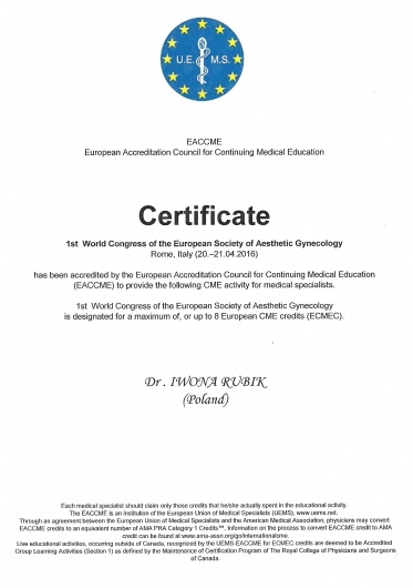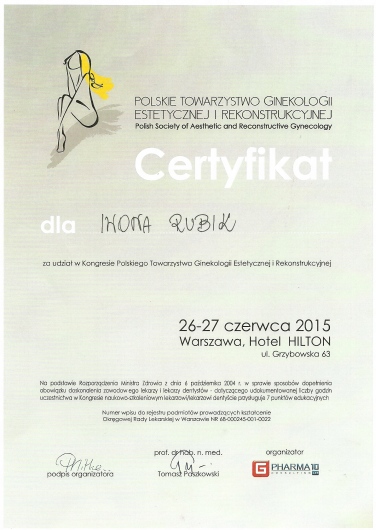 2015 r. - uczestnictwo w pierwszym kongresie European Society of Aesthetic Gynecology w Rzymie
