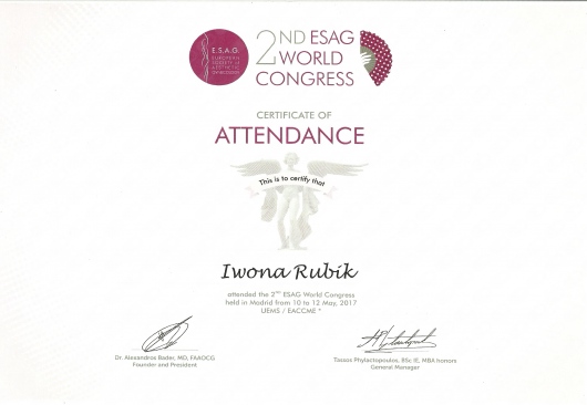 2016 r. - uczestnictwo w drugim kongresie European Society of Aesthetic Gynecology w Madrycie.