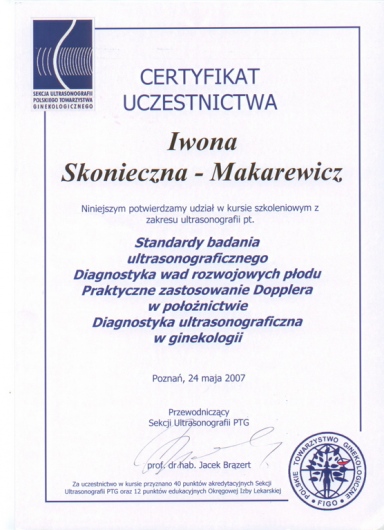 Oferuję badania profilaktyczne i konsultacje w zakresie schorzeń układu rodnego i gruczołów piersiowych, prowadzenie ciąży i poradnictwo w kwestii planowania poczęcia, USG: położnicze, ginekologiczne i piersi. Moją wiedzę medyczną aktualizuję poprzez ciągły udział w kursach, szkoleniach, konferencjach.