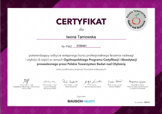 • Konsultacja online - Iwona Tarnowska • Leczenie otyłości - wizyta kolejna •