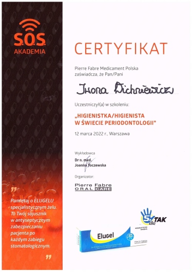 Jaki jest zakres porad oferowanych przez Iwona Wichniewicz?Iwona Wichniewicz to higienistka/higienista stomatologiczny. Na podstawie swojego doświadczenia i wykształcenia Iwona Wichniewicz oferuje usługi takie jak: piaskowanie, scaling, lakierowanie zębów, usuwanie kamienia nazębnego.