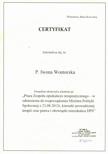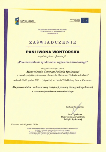 - pracując w Domu Pomocy Społecznej z osobami z zaburzeniami psychicznymi i ich rodzinami,