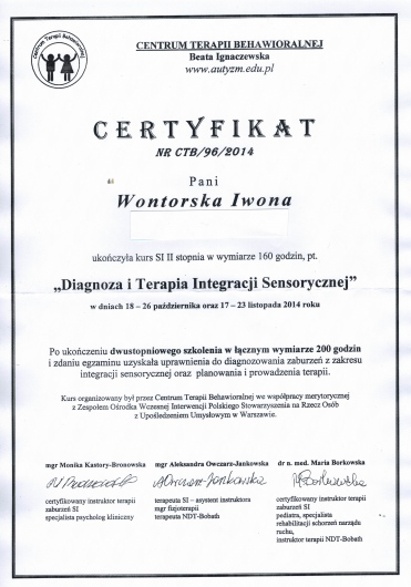 Ukończenie szkolenia I i II stopnia z zakresu Integracji Se